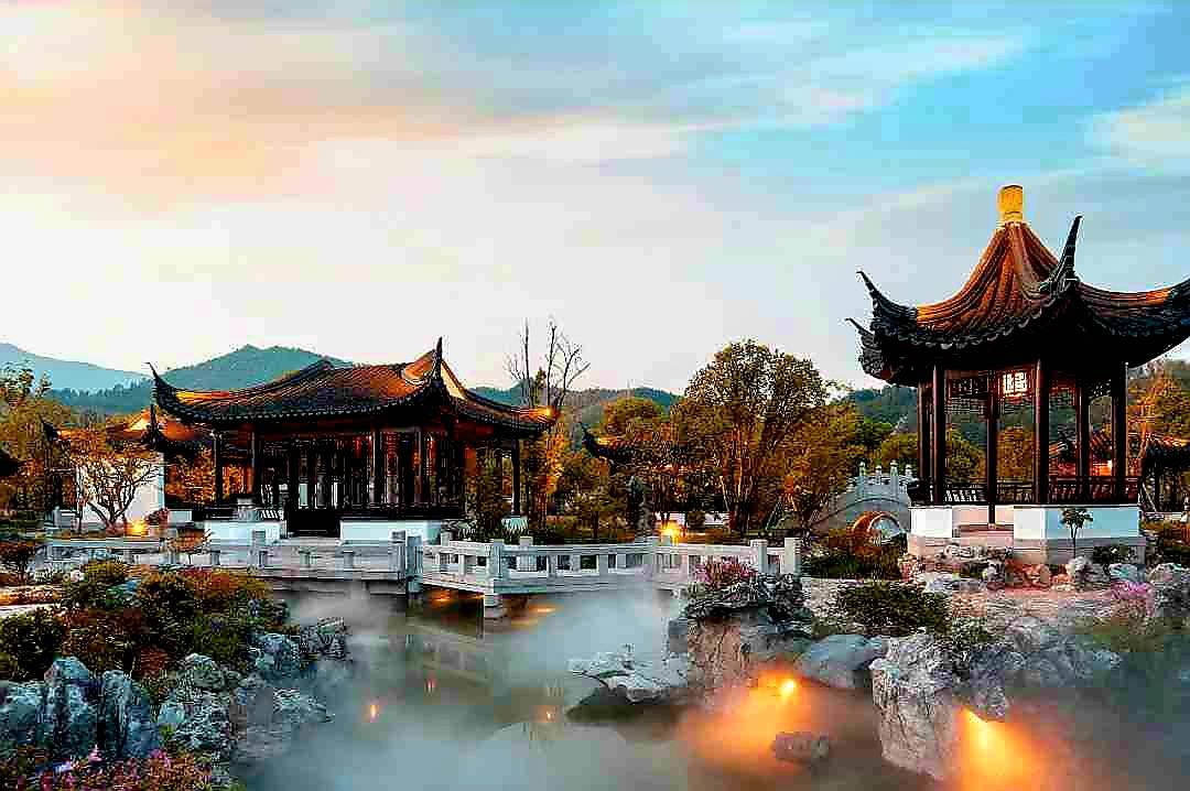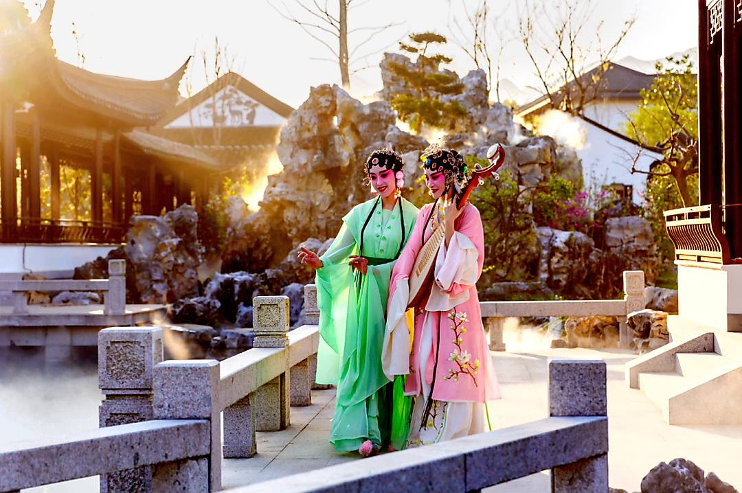 來到宛如仙境關雎文化園,可用400多年前,湯顯祖的優美詩句「山也清,水也清,人在山陰道上行,春雲處處生。」來形容此地。關雎文化園作為戲曲小鎮,一曲牡丹亭:「廊邊漫賞鏡花水月。不為風,不為雨,只為遇見你…」,如穿越時空深入湯公作品之中,處處都是“牡丹亭”。