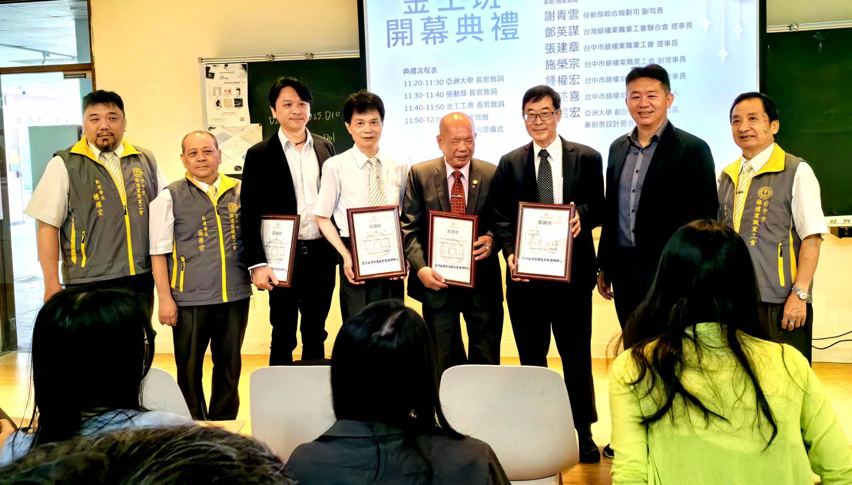 亞洲大學(Asia University, Taiwan)於5月6日發明中心舉辦「金工班開幕典禮」,創意設計副院長兼創意設計暨發明中心林信宏邀請到 勞動部綜合謝青雲副司長、台灣銀樓業職業工會聯合會鄧英謀理事長、台中市銀樓業職業工會張建章理事長、施榮宗副理事長、鍾權宏副理事長、廖述喜召集人、廖宜楷理事,共7位重量級長官,推廣產官學輔導合作,輔導亞大學生報考金工證照,讓亞大年輕學子及師生有更多的機會切磋學習、展現他們的作品,為未來就業做準備。